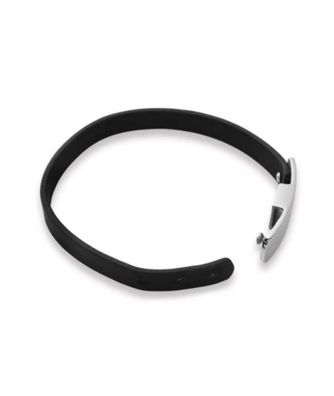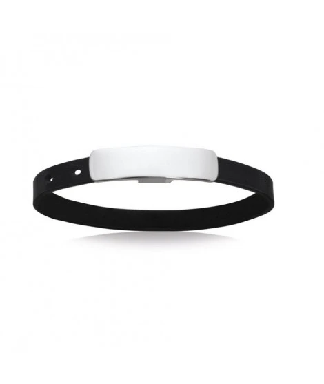 Bracelet en cuir et plaque à graver en acier. Gravure sur le recto comprise dans le prix. Largeur du cuir : 7 mm. Largeur intérieure : 6 cm. Fermoir en acier. Plaque à graver : 10 x 40 mm. Livré dans sa jolie pochette.