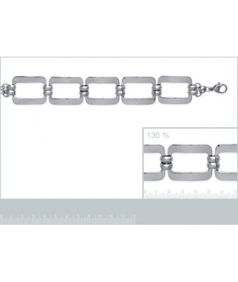Bracelet en acier composé de 5 rectangles, forme moderne. Fermoir mousqueton. Longueur : 19 cm. Largeur : 25 mm. Livré dans sa jolie pochette organza.