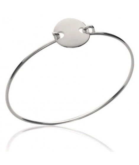 Superbe bracelet en argent 925/000 massif avec sa médaille de 17 mm à graver. Gravure sur le recto comprise dans le prix. Poids d’argent : 5,58 grammes. Ouverture facile par la médaille. Largeur : 65 mm. Livré dans sa jolie pochette.