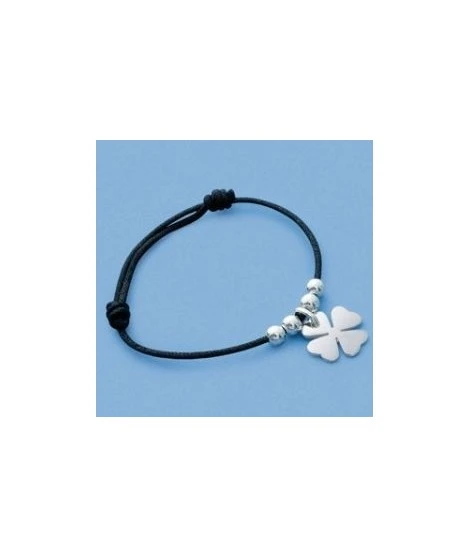 Bracelet composĂ© d’un trèfle en argent et de 4 perles en argent, sur un cordon ajustable par noeuds coulissants. Choisissez la couleur de votre cordon. Poids d’argent : 3,10 grammes. Trèfle : 14 x 14 mm. LivrĂ© dans sa jolie pochette en organza prĂŞte Ă offrir.