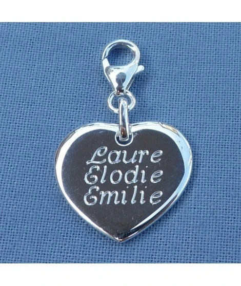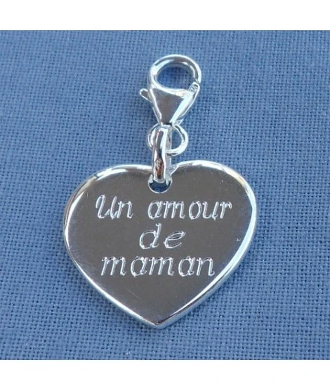 Charm coeur à graver en argent 925/000, épais et légèrement bombé