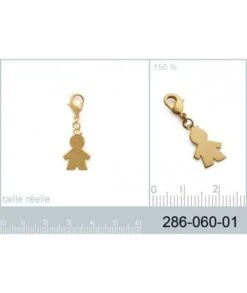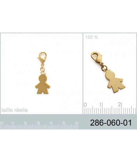Charm, pendentif avec mousqueton, en plaqué or garanti 10 ans, forme garçon