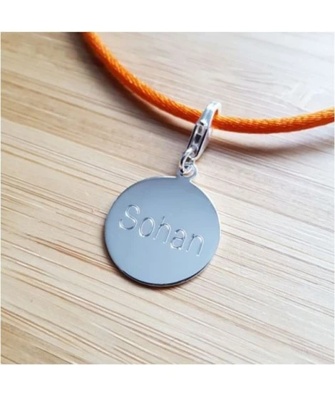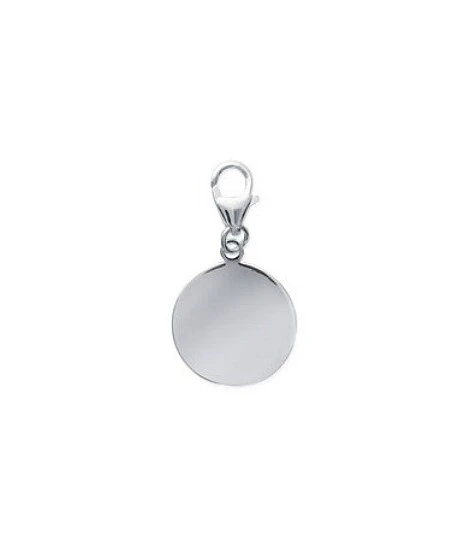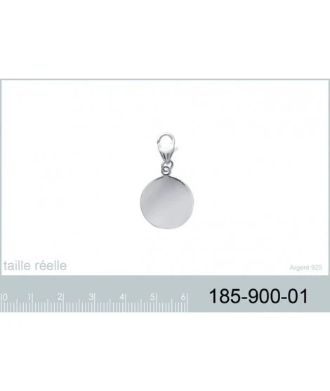 Pendentif charm avec médaille à graver de 17 mm de diamètre, en argent 925/000. Gravure sur le recto comprise dans le prix. Mousqueton. Poids d’argent : 1,77 gramme. Livré dans sa jolie pochette en organza prête à offrir.