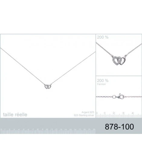 Ce collier est vraiment ravissant. Il est composĂ© de 2 coeurs enlacĂ©s sur chaĂ®ne, avec oxydes de zirconium tout autour du premier coeur. Argent 925/000 rhodiĂ©. Longueur : 42 cm. Largeur : 1 mm. Coeurs : 14 x 9 mm. Poids d’argent : 2,49 grammes. LivrĂ© dans sa jolie pochette en organza prĂŞte Ă offrir.
