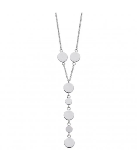 Collier en acier, avec 7 belles médailles à graver. Les 2 petites mesurent 7 mm de diamètre, et les 5 grandes mesurent 11 mm de diamètre. Longueur : 45 cm. Fermoir mousqueton et chaînette de réglage de la longueur. Idéal pour graver plusieurs prénoms et/ou des initiales. Livré dans sa jolie pochette.