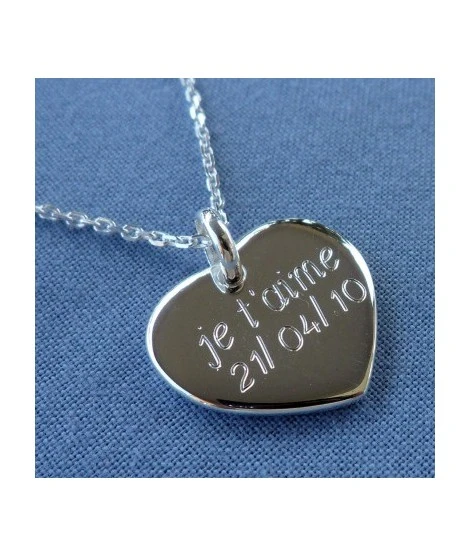 Collier en argent 925/000 ou plaquĂ© or garanti 10 ans composĂ© d’une chaĂ®ne de 45 cm et d’un pendentif en forme de coeur très joli, Ă©pai et lĂ©gèrement bombĂ©. Gravure recto comprise dans le prix. LivrĂ© dans sa jolie pochette en organza prĂŞte Ă offrir.