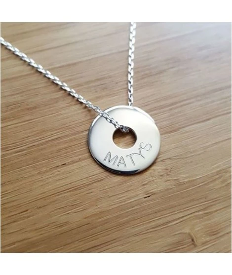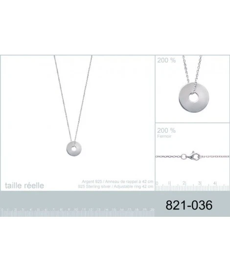 Collier mixte pour tous les âges, composĂ© d’une chaĂ®ne en argent 925/000 et d’un disque, diamètre au choix 15 ou 20 mm