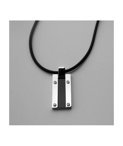 Ce collier pour homme est en acier et carbone. Cordon noir avec noeuds coulissants. Le pendentif mesure 25 x 13 cm. Il peut être gravé sur le verso (compris dans le prix) avec un prénom, une date, un message… gravure à indiquer en bas de cette page. Livré dans une jolie pochette en organza prête à offrir.