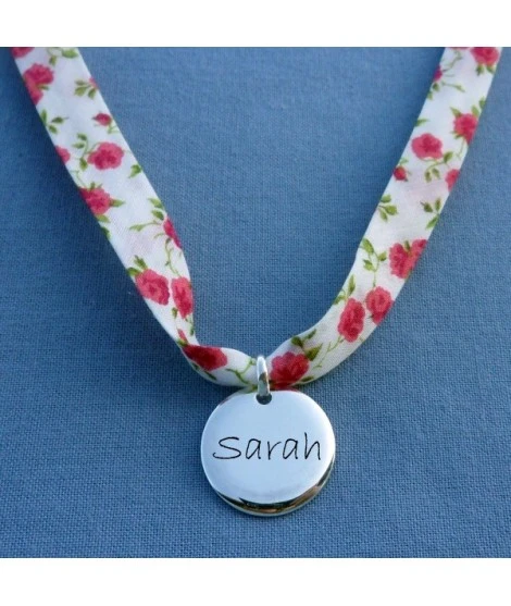 Adorable collier sur ruban Liberty, accompagné de sa jolie médaille ronde de 20 mm, en argent ou plaqué or. Couleur du Liberty à choisir dans la rubrique Tout en kit > Rubans > Liberty, et à noter juste en dessous ici, dans la zone de personnalisation. Tout est compris dans ce petit prix : le cordon Liberty + le pendentif + la gravure + la jolie pochette organza prête à offrir.