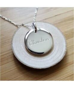 Un classique indémodable : le collier sur chaîne et sa médaille en argent 925/000 ou en plaqué or garanti 10 ans. La médaille mesure 2 cm de diamètre. La chaîne mesure 40 ou 45 cm, ou 80 cm avec supplément. Gravure recto comprise. Livré dans sa jolie pochette parfumée en organza prête à offrir.