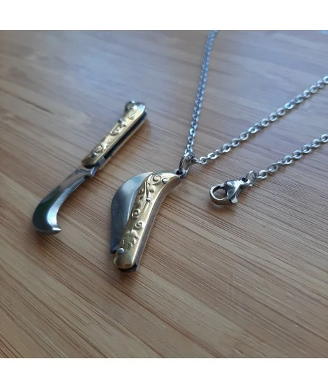 Craquez pour cet adorable collier avec pendentif de couteau miniature.