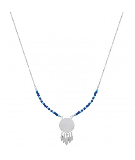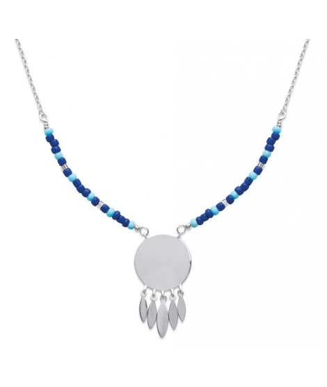 ★ Collier en argent rhodié et médaille adorable à graver de 15 mm et feuilles.