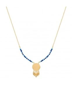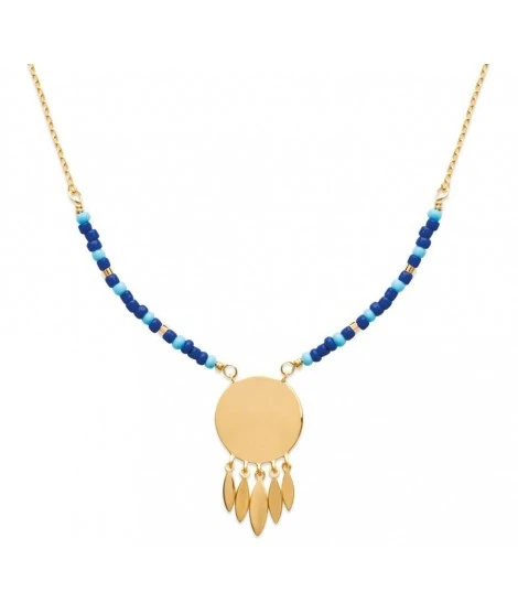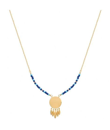 ★ Collier en plaqué or jaune et médaille adorable à graver de 15 mm et feuilles.