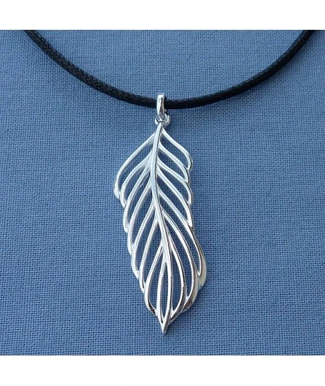 Collier original avec une plume magnifique de 44 mm ! Disponible en argent 925/000 ou plaquĂ© or garanti 10 ans, couleur du cordon au choix. Longueur : 44 mm. Largeur : 16 mm. Poids d’argent : 3,28 grammes. LivrĂ© dans sa jolie pochette en organza prĂŞte Ă offrir.
