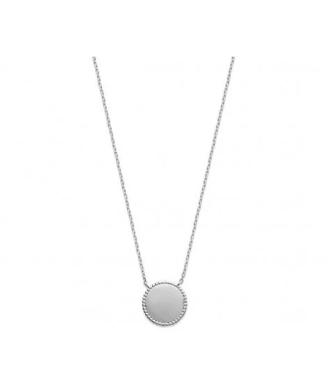 Collier en argent rhodié et médaille adorable à graver de 15 mm.
