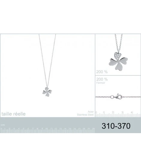Collier en argent, avec superbe pendentif trèfle à 4 feuilles porte bonheur, décoré de jolis oxydes de zirconium bien brillants. Longueur : 45 cm. Trèfle : 20 x 20 mm. Livré dans sa jolie pochette organza.