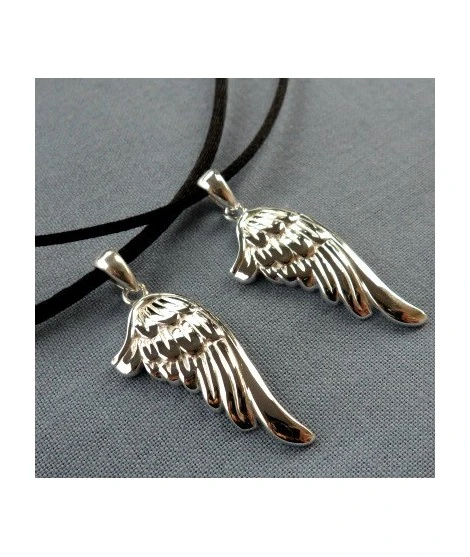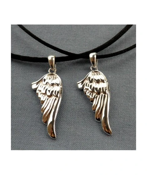 Duo composĂ© de 2 colliers avec chacun une aile d’ange superbe, en plaquĂ© or garanti 10 ans. Dimensions d’une aile : 33 x 14 mm (hors bĂ©lière). Cordon couleur au choix. Pas de gravure possible. Chaque collier est livrĂ© dans une pochette en organza parfumĂ©e.