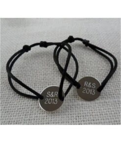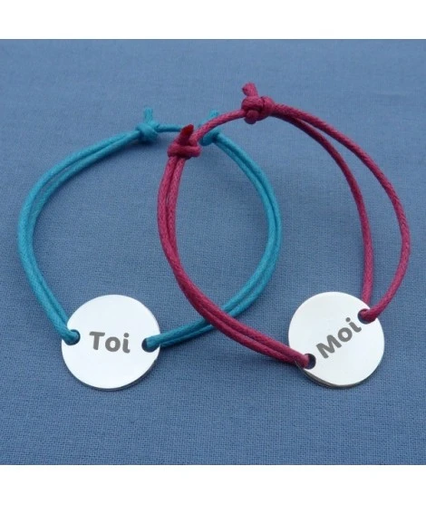 Si vous avez la chance d’avoir un(e) amoureux(se), quoi de plus symbolique que de porter le même bracelet ? Offrez-vous ce duo des amoureux, médailles 20 mm en argent 925/000, couleur du cordon au choix. Pensez à faire graver dessus (compris dans le prix) vos prénoms, des dates importantes ou un petit message… Découvrez également nos meilleures suggestions pour femme ou pour homme.