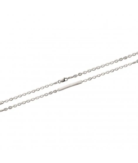 Très belle gourmette en argent rhodié, grain de café, fermoir mousqueton.