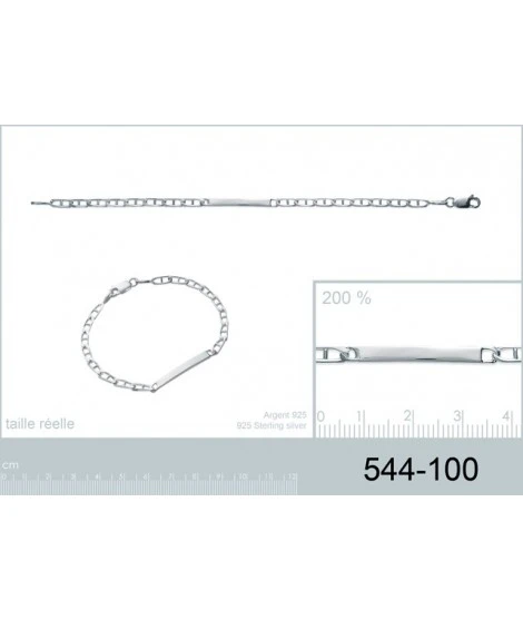 Gourmette, bracelet mixte pour enfant ou femme poignet fin en argent 925/000, maille marine plate.