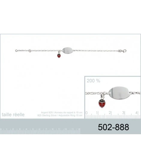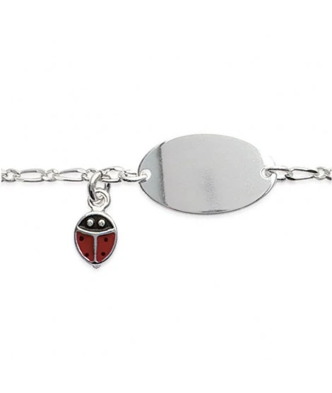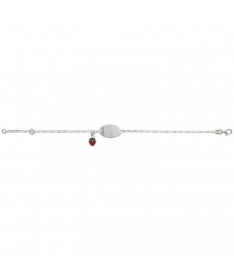 Gourmette bracelet en argent 925/000 avec pièce ovale au centre et jolie coccinelle Ă©mail sur le cĂ´tĂ©. Longueur : 16 cm. Anneau de rappel Ă 15 cm pour les poignets les plus fins. Gravure sur le recto comprise dans le prix. Ovale : 17 x 10 mm. Poids d’argent : 2,63 grammes. LivrĂ©e dans sa jolie pochette en organza. IdĂ©e cadeau baptĂŞme.