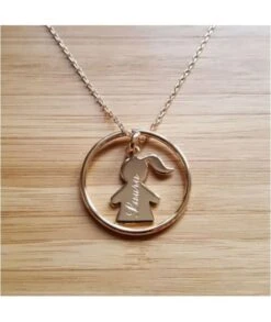 Pendentif silhouette fille fillette girl, en plaqué or jaune