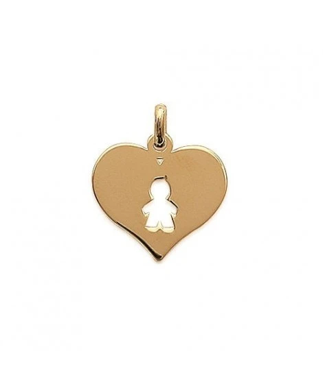 Pendentif coeur avec garçon chérubin boy, en plaqué or jaune