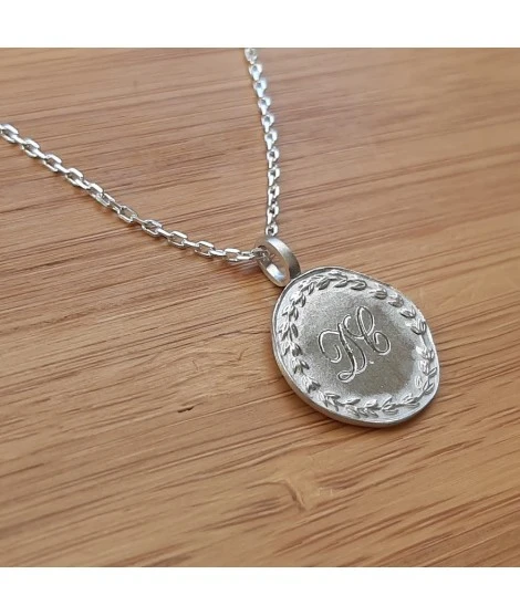 ★ Pendentif médaille ronde à graver « couronne de laurier »